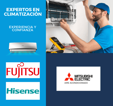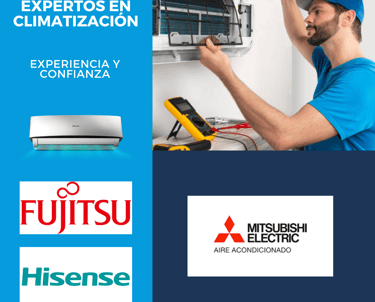 Trabajamos con marcas reconocidas como Mitsubishi, Fujitsu, Daikin, Toshiba, Panasonic, y más, garantizando calidad y confianza.